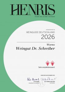 Ausgezeichnet von »HENRIS« im Weinguide Deutschland als »sehr empfehlenswert«.